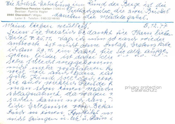 72868310 Oberstdorf Gaestehaus Pension Laiter postalisch nicht gelaufen Erhaltung siehe scans [LiesaD40] KatCode: 11110009780133