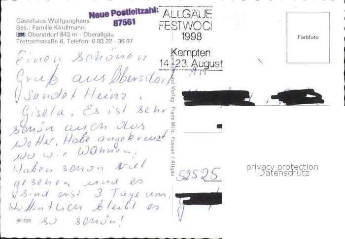 72416009 Oberstdorf Gaestehaus Wolfgang Haus Gesamtansicht postalisch nicht gelaufen Erhaltung siehe scans KatCode: 11110009780133