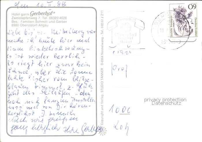 72579450 alte Postkarte Oberstdorf Garni Hotel Gerberhof Winterpanorama postalisch gelaufen Erhaltung siehe scans [FriedD77] KatCode: 11110009780133