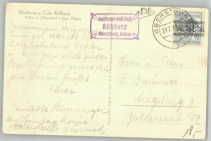 40228111 Oberstdorf Gasthaus Kühberg KatCode 11110009780133