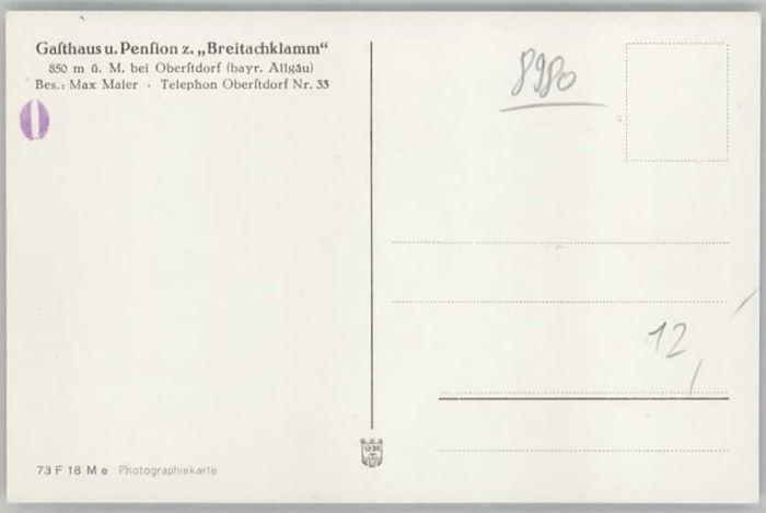 40643005 Oberstdorf Gasthaus Pension Breitachklamm KatCode 11110009780133
