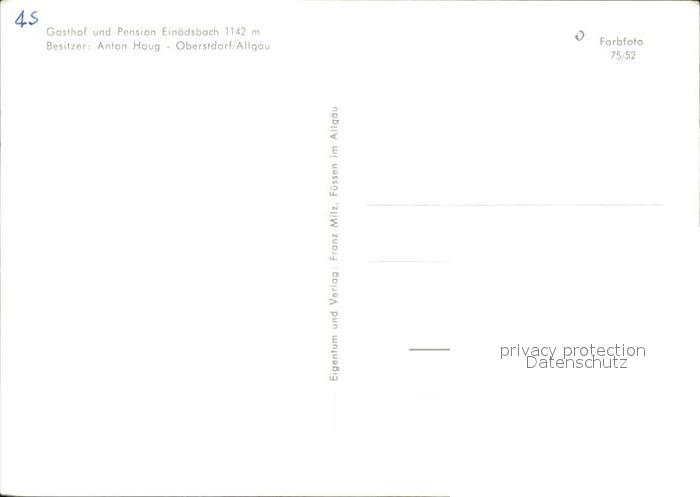 72257289 Oberstdorf Gasthaus Pension Einoedsbach postalisch nicht gelaufen Erhaltung siehe scans KatCode: 11110009780133