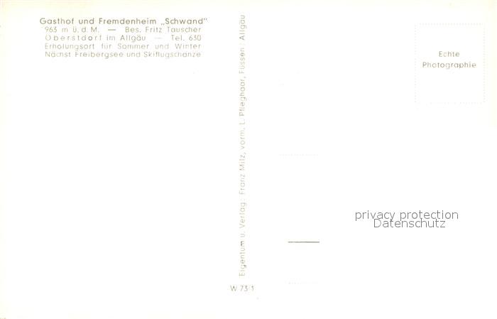 73652476 Oberstdorf Gasthof Schwand postalisch nicht gelaufen Erhaltung siehe scans [WerneD78] KatCode: 11110009780133