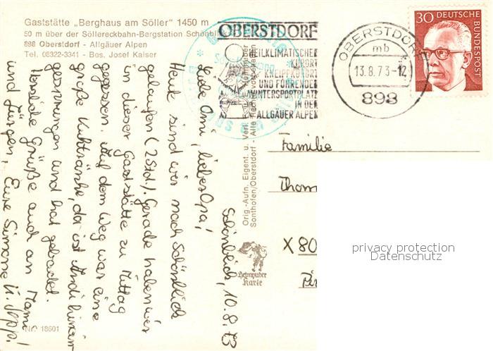 73840549 alte Postkarte Oberstdorf Gaststaette Berghaus am Soeller Sessellift Soellereckbahn Allgaeuer Alpen postalisch gelaufen Erhaltung siehe scans [FriedD77] KatCode: 11110009780133