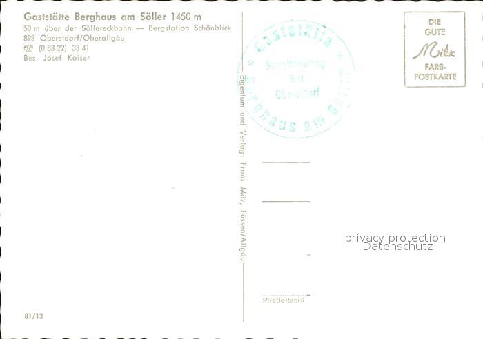 72000736 Oberstdorf Gaststaette Berghaus am Soeller postalisch nicht gelaufen Erhaltung siehe scans KatCode: 11110009780133