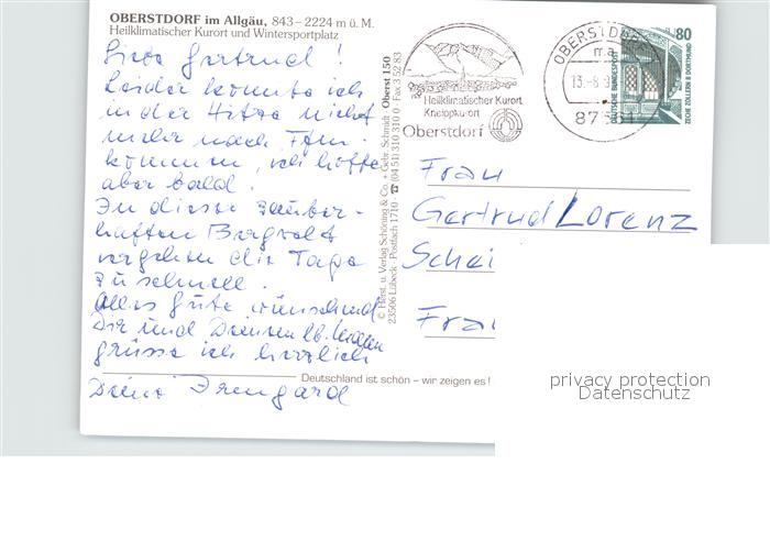 72613450 alte Postkarte Oberstdorf Gesamtansicht mit Alpen postalisch gelaufen Erhaltung siehe scans [AndreD76] KatCode: 11110009780133