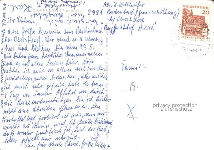 72165713 alte Postkarte Oberstdorf Gesamtansicht mit Alpenpanorama Kirchstrasse Schneck Laufbachersee Nebelhornbahn Kuehberg postalisch gelaufen Erhaltung siehe scans KatCode: 11110009780133