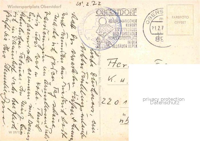 72848879 alte Postkarte Oberstdorf Gesamtansicht Wintersportplatz Allgaeuer Alpen postalisch gelaufen Erhaltung siehe scans [FriedD77] KatCode: 11110009780133