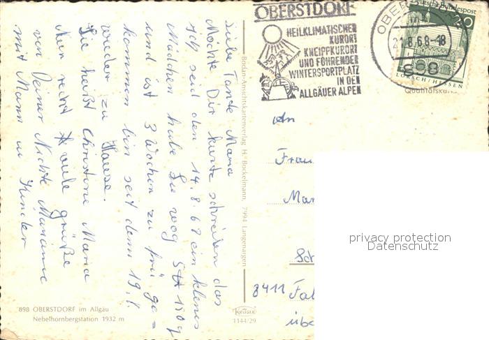 71928951 alte Postkarte Oberstdorf Glasfelderkopf Fuchskarspitze Hochvogel Wasserfallkarspitze postalisch gelaufen Erhaltung siehe scans KatCode: 11110009780133