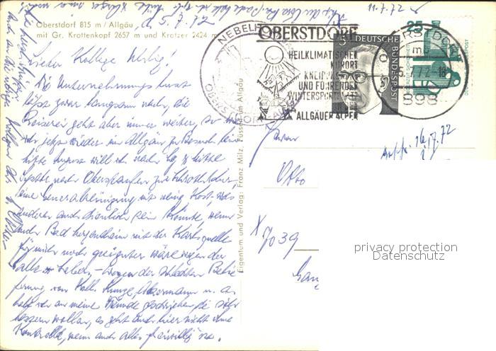 alte Postkarte Oberstdorf Gr Krottenkopf Kratzer postalisch gelaufen Erhaltung siehe scans