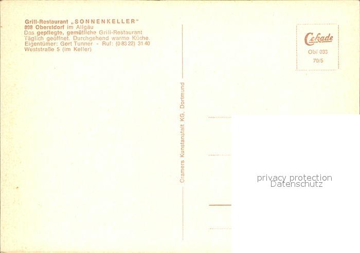 72610399 Oberstdorf Grill Restaurant Sonnen Keller postalisch nicht gelaufen Erhaltung siehe scans [AndreD76] KatCode: 11110009780133