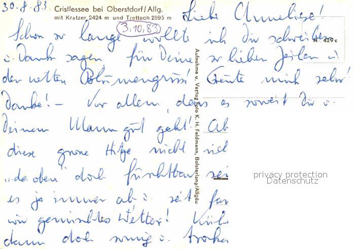 72737599 Oberstdorf Haus am Cristlessee mit Kratzer und Trettach Allgaeuer Alpen postalisch nicht gelaufen Erhaltung siehe scans [FriedD77] KatCode: 11110009780133