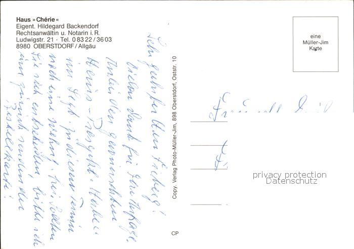 72259359 Oberstdorf Haus Cherie postalisch nicht gelaufen Erhaltung siehe scans KatCode: 11110009780133