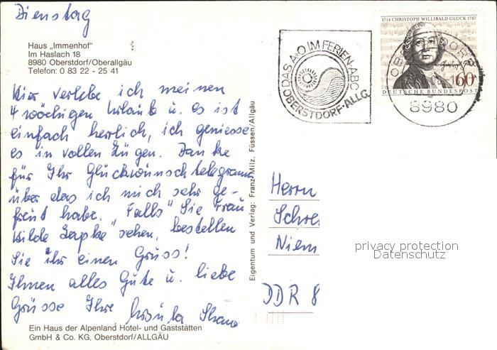 72503916 alte Postkarte Oberstdorf Haus Immerhof postalisch gelaufen Erhaltung siehe scans KatCode: 11110009780133