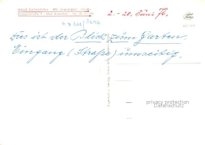 73131884 Oberstdorf Haus Katharina Pension Gaestehaus Alpen postalisch nicht gelaufen Erhaltung siehe scans [FriedD77] KatCode: 11110009780133