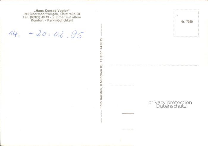 71946209 Oberstdorf Haus Konrad Vogler Gaestehaus Pension postalisch nicht gelaufen Erhaltung siehe scans KatCode: 11110009780133