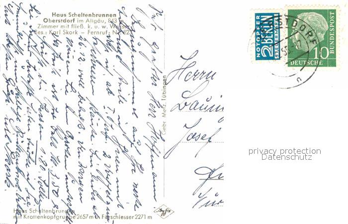 72884444 alte Postkarte Oberstdorf Haus Scheltenbrunnen postalisch gelaufen Erhaltung siehe scans [PaolaD17] KatCode: 11110009780133