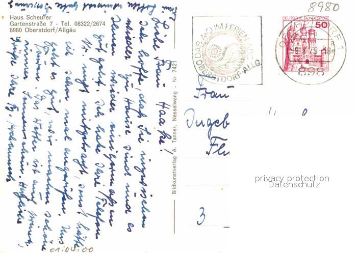 72887510 alte Postkarte Oberstdorf Haus Scheurer postalisch gelaufen Erhaltung siehe scans [WerneD78] KatCode: 11110009780133