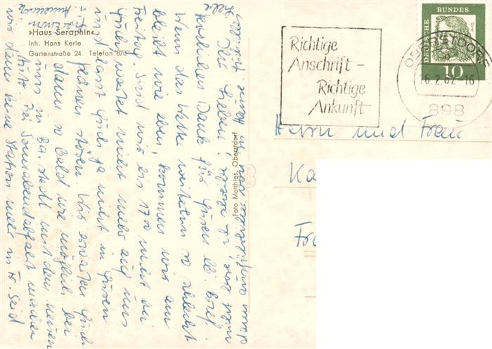 73872353 alte Postkarte Oberstdorf Haus Seraphin postalisch gelaufen Erhaltung siehe scans [WerneD78] KatCode: 11110009780133