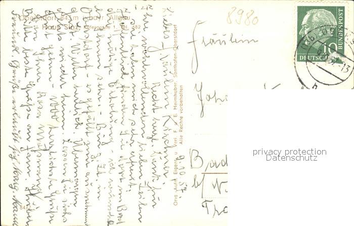 31708147 alte Postkarte Oberstdorf Haus Sinz Kuefergasse 1 postalisch gelaufen Erhaltung siehe scans KatCode: 11110009780133