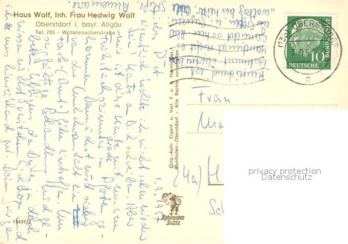 73103129 alte Postkarte Oberstdorf Haus Wolf Fruehstueckszimmer postalisch gelaufen Erhaltung siehe scans [KathaD81] KatCode: 11110009780133