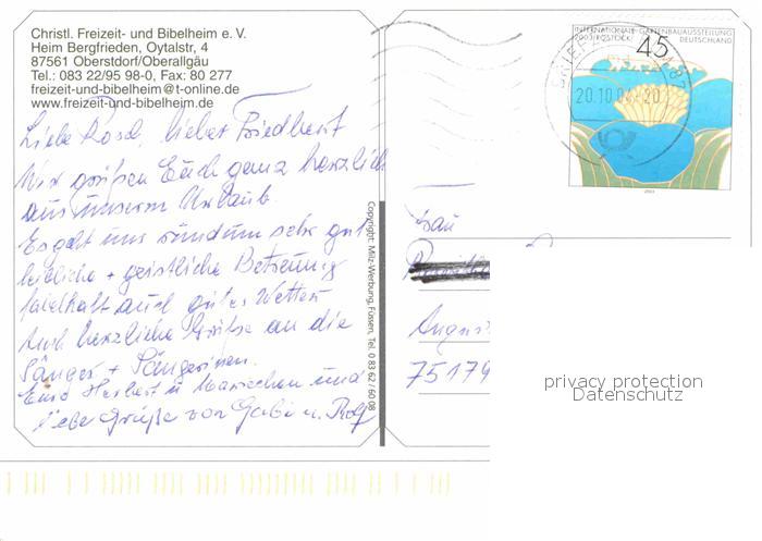 72854706 alte Postkarte Oberstdorf Heim Bergfrieden postalisch gelaufen Erhaltung siehe scans [LiesaD40] KatCode: 11110009780133