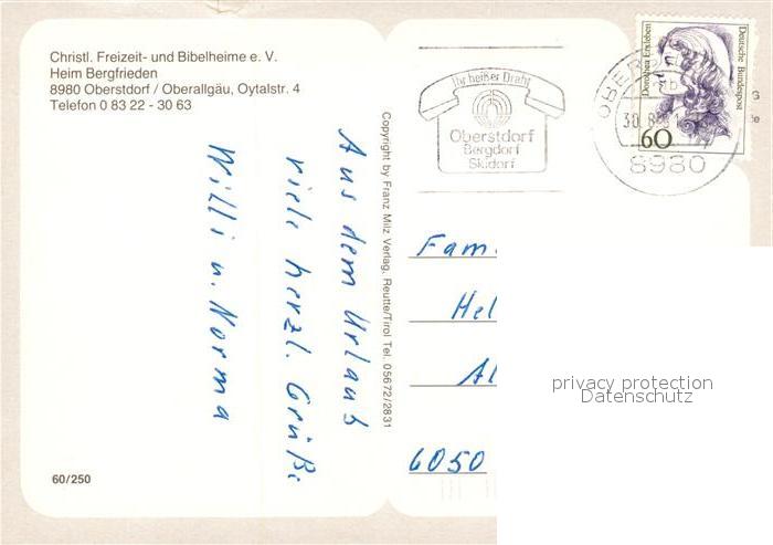 73252443 alte Postkarte Oberstdorf Heim Bergfrieden Gastraum Panorama See postalisch gelaufen Erhaltung siehe scans [WerneD78] KatCode: 11110009780133