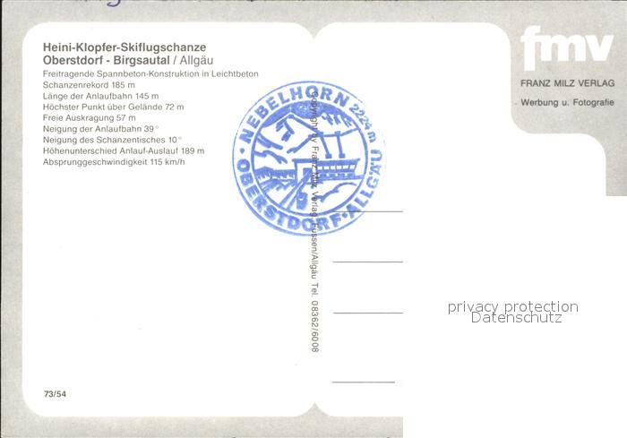 72442935 Oberstdorf Heini Klopfer Skiflugschanze postalisch nicht gelaufen Erhaltung siehe scans KatCode: 11110009780133