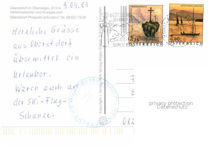72616564 alte Postkarte Oberstdorf Herbststimmung Alpenpanorama Freibergsee Kirche Wanderweg Breitachklamm Schlucht postalisch gelaufen Erhaltung siehe scans [FriedD77] KatCode: 11110009780133