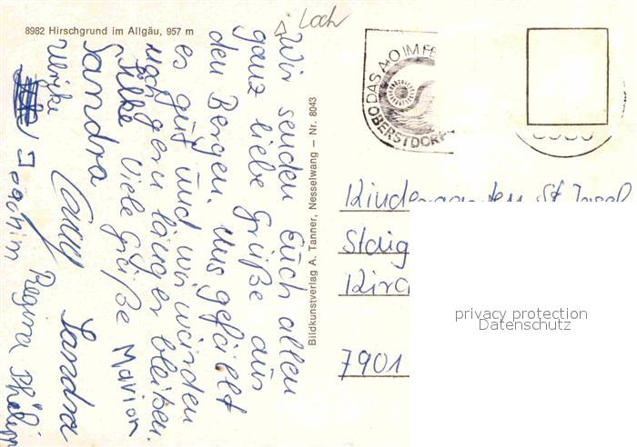 72727908 alte Postkarte Oberstdorf Hirschgrund Berghaus postalisch gelaufen Erhaltung siehe scans [LiesaD40] KatCode: 11110009780133