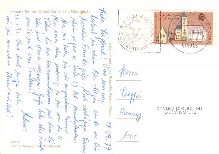 72830581 alte Postkarte Oberstdorf Hoehenluftkurort Alpenpanorama Fliegeraufnahme postalisch gelaufen Erhaltung siehe scans [FriedD77] KatCode: 11110009780133