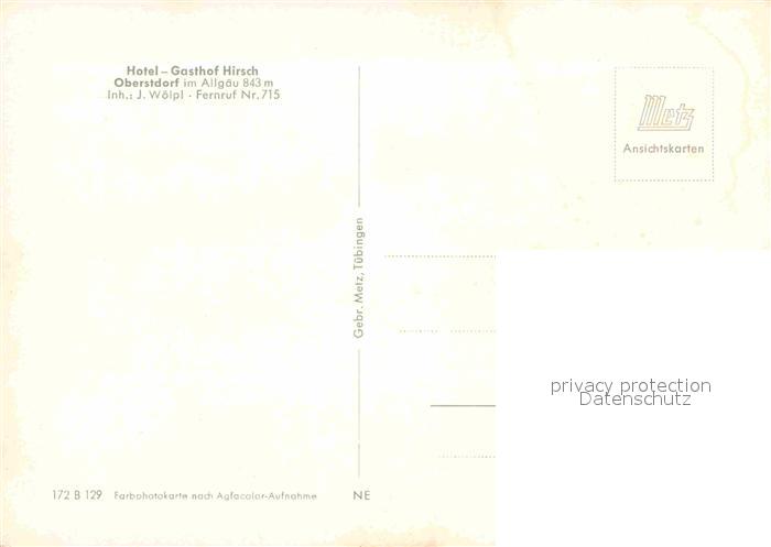 72789924 Oberstdorf Hotel Gasthof Hirsch postalisch nicht gelaufen Erhaltung siehe scans [LiesaD40] KatCode: 11110009780133