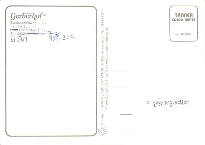 72409542 Oberstdorf Hotel Gergerhof Fliegeraufnahme postalisch nicht gelaufen Erhaltung siehe scans KatCode: 11110009780133