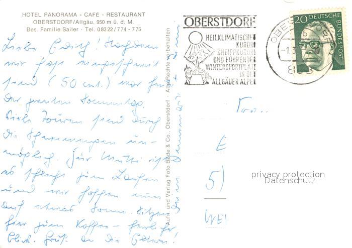 73712193 alte Postkarte Oberstdorf Hotel Panorama Cafe Restaurant Alpenblick postalisch gelaufen Erhaltung siehe scans [FriedD77] KatCode: 11110009780133