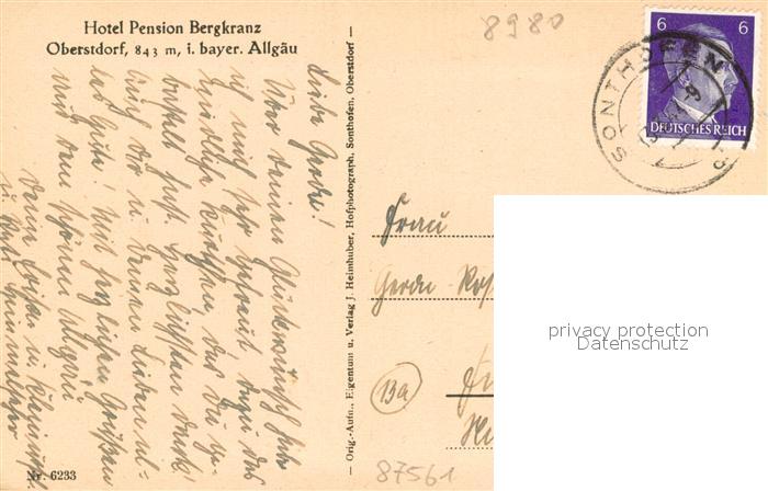 73710454 alte Postkarte Oberstdorf Hotel-Pension Bergkranz Im Winter postalisch gelaufen Erhaltung siehe scans [LiesaD40] KatCode: 11110009780133