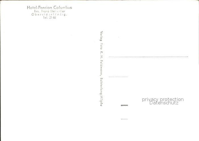 72118569 Oberstdorf Hotel Pension Columbus postalisch nicht gelaufen Erhaltung siehe scans KatCode: 11110009780133