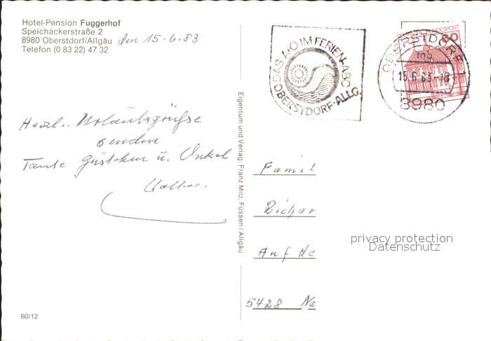 71940059 alte Postkarte Oberstdorf Hotel Pension Fuggerhof postalisch gelaufen KatCode: 11110009780133