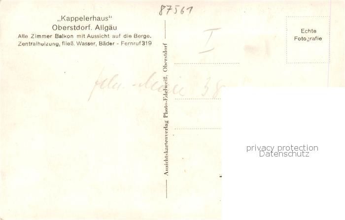 73801696 Oberstdorf Hotel Pension Kappelerhaus Winterlandschaft Allgaeuer Alpen postalisch nicht gelaufen Erhaltung siehe scans [FriedD77] KatCode: 11110009780133