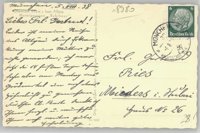 40227320 Oberstdorf Hotel Pension Rubihaus postalisch gelaufen Alte Ansichtskarte Postkarte alte Postkarte Katcode 11110009780133