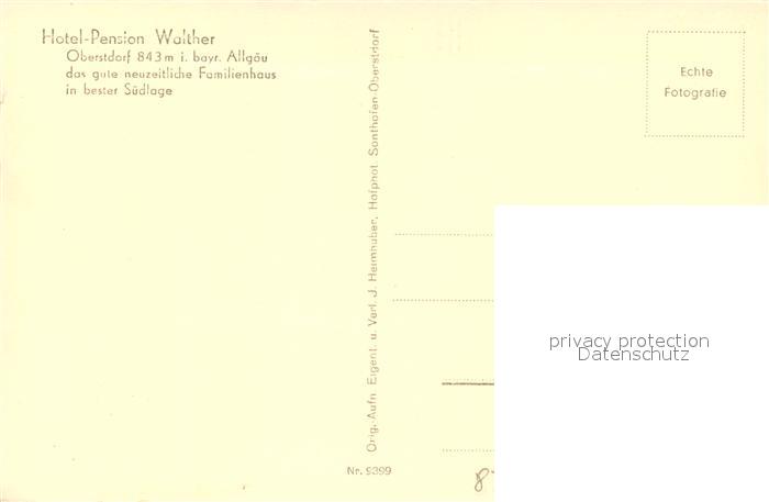 73710634 Oberstdorf Hotel Pension Walther postalisch nicht gelaufen Erhaltung siehe scans [WerneD78] KatCode: 11110009780133