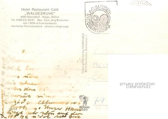 73646384 Oberstdorf Hotel Restaurant Cafe Waldesruhe postalisch nicht gelaufen Erhaltung siehe scans [WerneD78] KatCode: 11110009780133