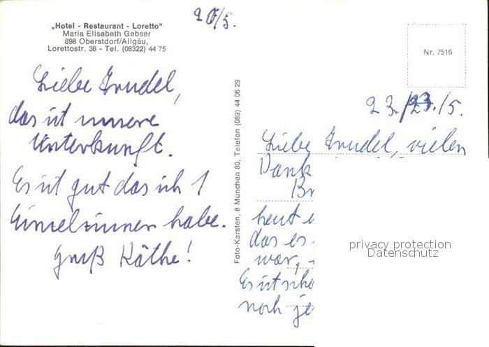 72579449 Oberstdorf Hotel Restaurant Loretto Terrasse Alpenblick postalisch nicht gelaufen Erhaltung siehe scans [FriedD77] KatCode: 11110009780133