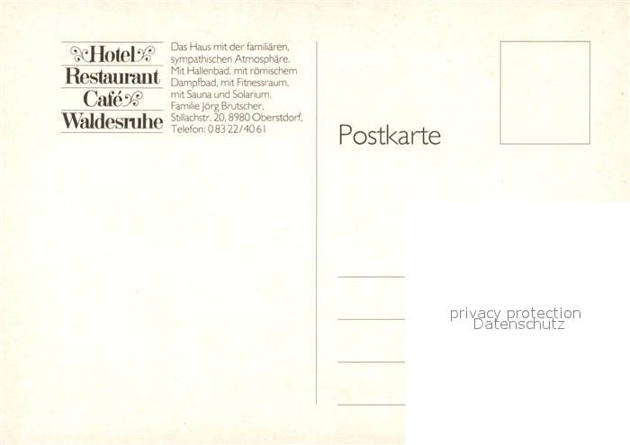 73105450 Oberstdorf Hotel Restaurant Waldesruhe postalisch nicht gelaufen Erhaltung siehe scans [WerneD78] KatCode: 11110009780133