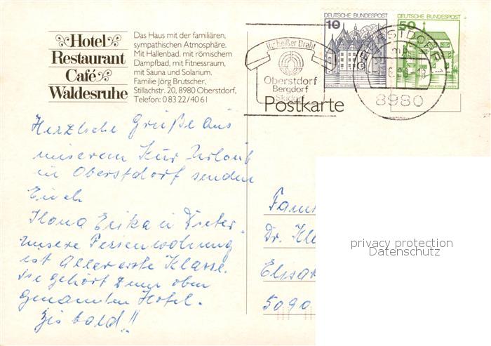 73841031 alte Postkarte Oberstdorf Hotel Waldesruhe Panorama postalisch gelaufen Erhaltung siehe scans [WerneD78] KatCode: 11110009780133