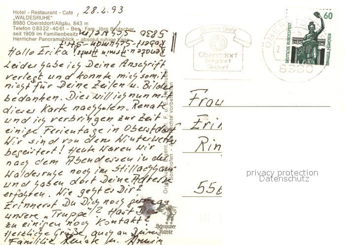 73174016 alte Postkarte Oberstdorf Hotel Waldesruhe postalisch gelaufen Erhaltung siehe scans [NatalD47] KatCode: 11110009780133