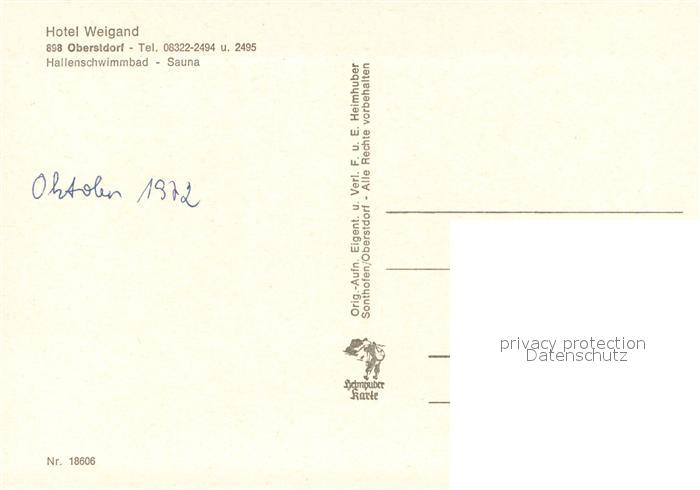73684233 Oberstdorf Hotel Weigand postalisch nicht gelaufen Erhaltung siehe scans [LiesaD40] KatCode: 11110009780133