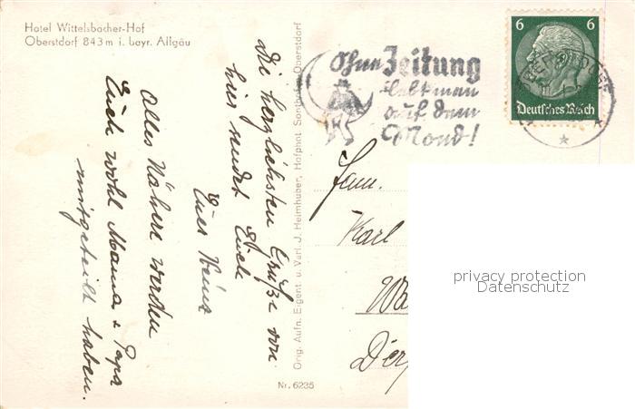 73801693 alte Postkarte Oberstdorf Hotel Wittelsbacher Hof Winterlandschaft Allgaeuer Alpen postalisch gelaufen Erhaltung siehe scans [FriedD77] KatCode: 11110009780133