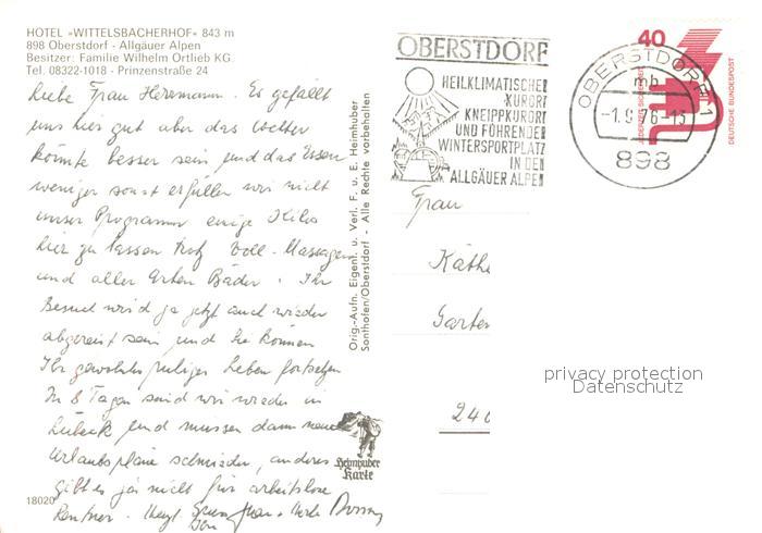 73657094 alte Postkarte Oberstdorf Hotel Wittelsbacherhof Parkanlagen Allgaeuer Alpen postalisch gelaufen Erhaltung siehe scans [FriedD77] KatCode: 11110009780133