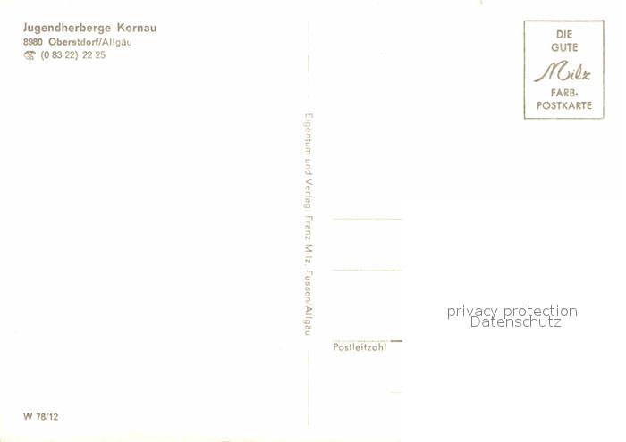 72671284 Oberstdorf Jugendherberge Kornau postalisch nicht gelaufen Erhaltung siehe scans [NatalD47] KatCode: 11110009780133