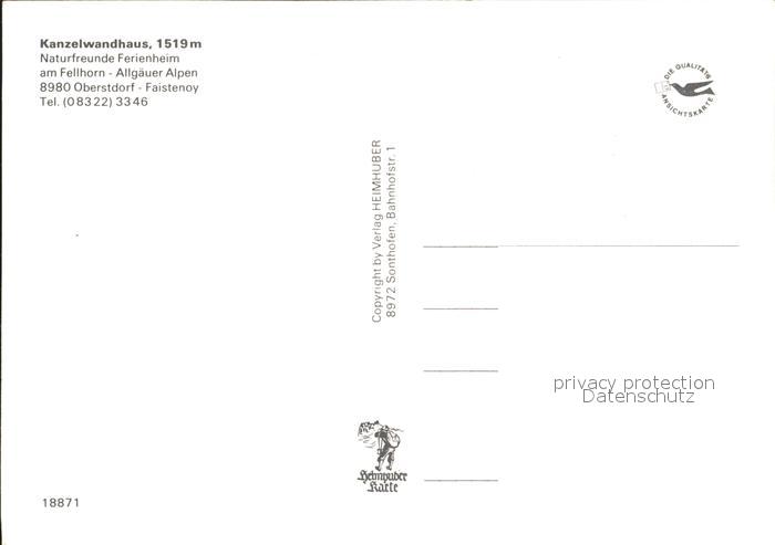 72248068 Oberstdorf Kanzelwandhaus Ferienheim Fellhornbahn postalisch nicht gelaufen Erhaltung siehe scans KatCode: 11110009780133